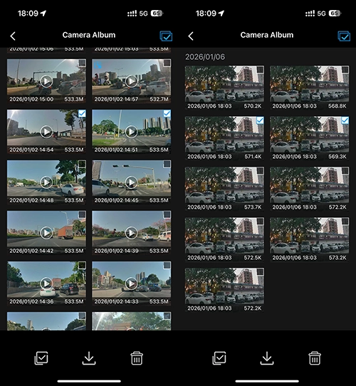 Select videos to download or delete.